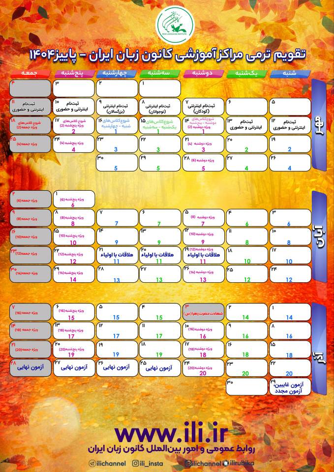 تقویم ترم پاییز 1401 کلاسهای کانون زبان در مجموعه مدارس واله